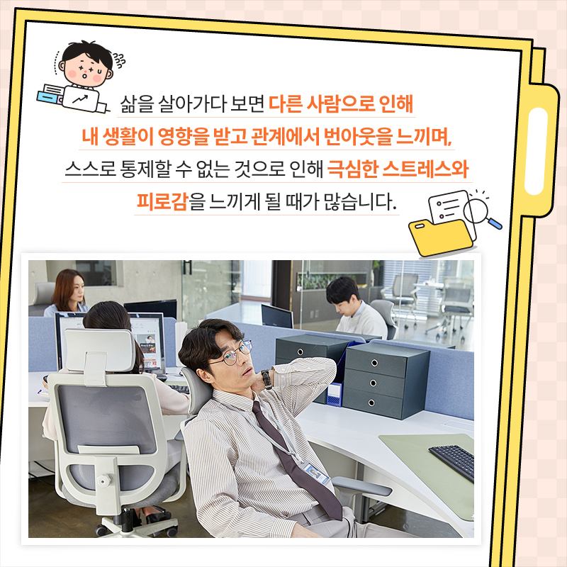 삶을 살아가다 보면 다른 사람으로 인해 내 생활이 영향을 받고 관계에서 번아웃을 느끼며, 스스로 통제할 수 없는 것으로 인해 극심한 스트레스와 피로감을 느끼게 될 때가 많습니다.