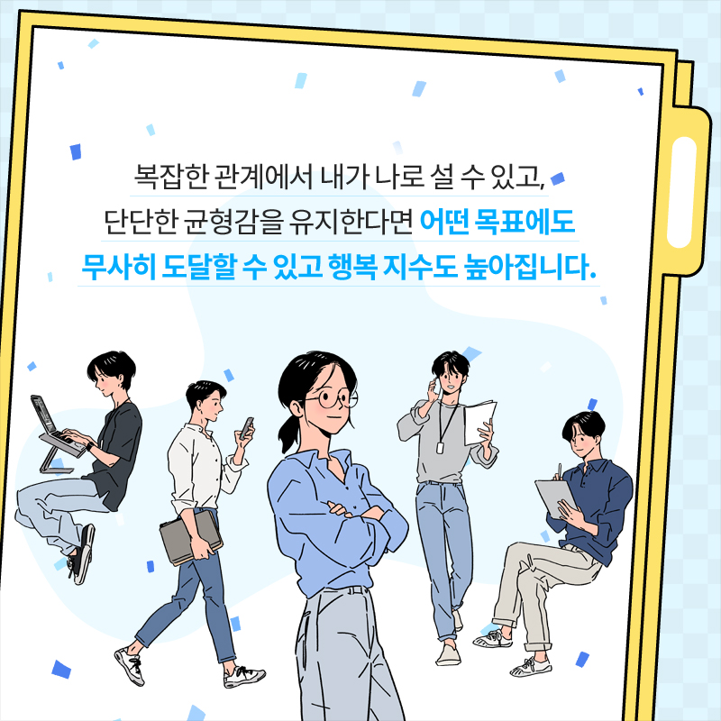 복잡한 관계에서 내가 나로 설 수 있고, 단단한 균형감을 유지한다면 어떤 목표에도 무사히 도달할 수 있고 행복 지수도 높아집니다.