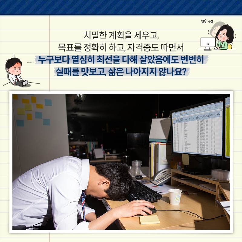 치밀한 계획을 세우고, 목표를 정확히 하고, 자격증도 따면서 누구보다 열심히 최선을 다해 살았음에도 번번히 실패를 맛보고, 삶은 나아지지 않나요?