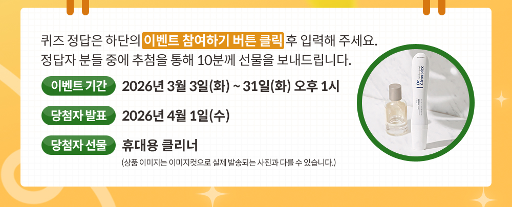 - 당첨자 선물: 휴대용 클리너(상품 이미지는 이미지컷으로 실제 발송되는 사진과 다를 수 있습니다.)