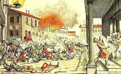 한편 유럽은 프랑스 혁명 이후 나폴레옹이 등장하면서 전화에 휩싸입니다. 러시아는 오스트리아, 프로이센 등과 함께 프랑스에 맞섰고 입실란티스도 러시아 군을 이끌고 여러 전투에 참여합니다. 그는 기병 부대를 이끌며 혁혁한 공을 세웠으나 1813년 독일 드레스덴 전투에서 포탄을 맞아 오른쪽 팔을 잃으면서 전투에 참여할 수 없게 되었습니다. 이후 빈 회의에 참여, 황제인 알렉산더 1세의 호의를 얻습니다. 러시아 제국에서 큰 성공을 거두고 있던 알렉산드로스 입실란티스였지만 그의 마음 한 켠에는 그리스 독립에 대해 열망이 있었습니다. 그러던 와중 그에게 한 조직이 손을 내밀게 됩니다.