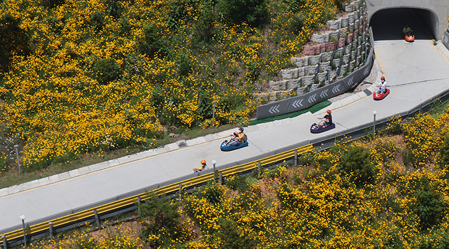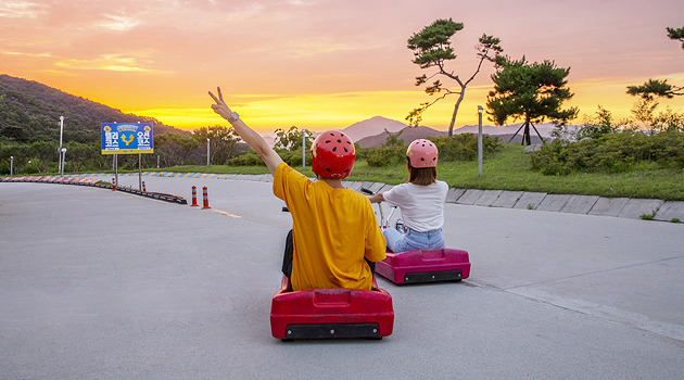꽃에 취한 강화도에서 다음으로 경험해야 할 것은 스피드다. 강화도에는 수려한 풍경을 감상하며 스릴 넘치는 레포츠를 즐길 수 있는 강화루지가 있다.