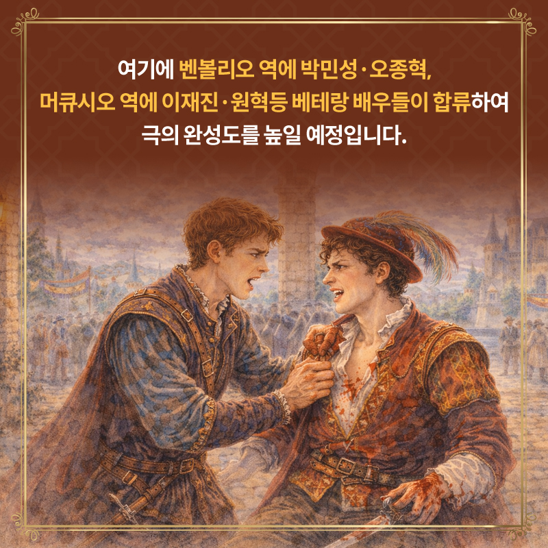 여기에 벤볼리오 역에 박민성·오종혁, 머큐시오 역에 이재진·원혁등 베테랑 배우들이 합류하여 극의 완성도를 높일 예정입니다.